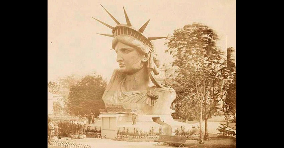 lembrancinhas. A cabeça da Estátua foi exposta na Exposição Universal de Paris,
